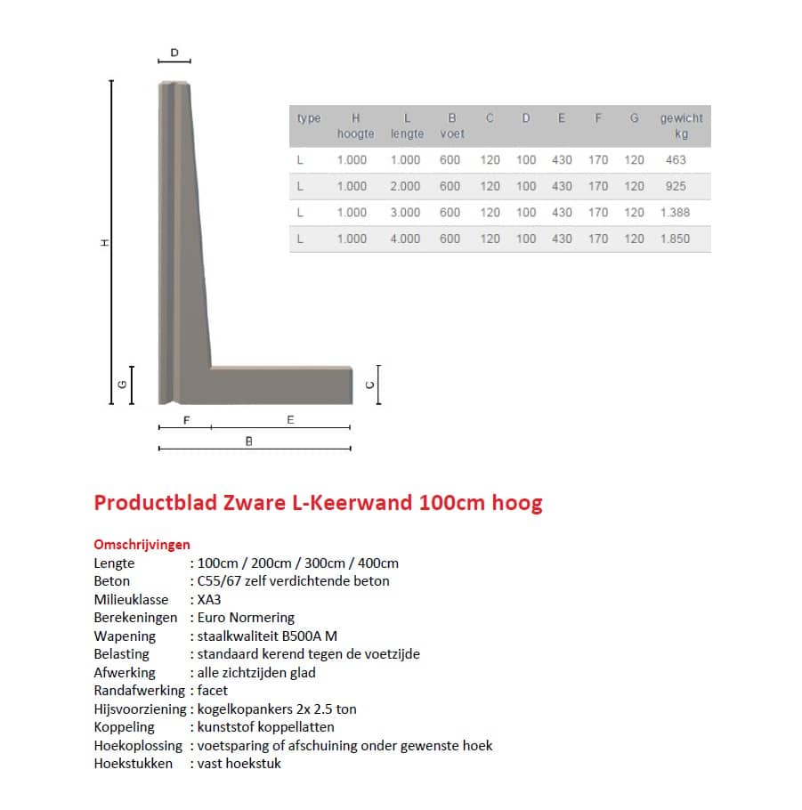 De keerwand 100x400x60cm, is een uitermate geschikt element dat wordt gebruikt om hoogteverschillen in terrein te overbruggen en stabiliteit te bieden aan hellingen. Gemaakt van duurzame materialen zoals beton, biedt de keerwand tevens een effectieve oplossing als mestopslag in de agrarische sector. De Keerwand 100x400x60cm is behalve in de grijze betonkleur ook leverbaar in bijvoorbeeld antraciet. Met regelmaat worden dergelijke wanden toegepast in siertuinen. Door het gebruik van hoogwaardige materialen en zorgvuldig ontwerp biedt de keerwand niet alleen functionele ondersteuning maar kan ook van esthetische meerwaarde zijn in de landschapsarchitectuur. Keerwanden zijn ook in andere (pas) maten leverbaar.